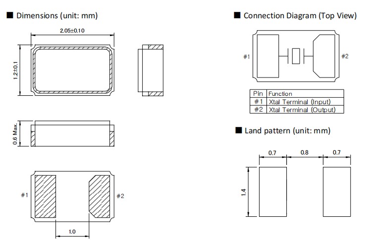 -2.05 x 1.2 x 0.6(最大)mm表面安裝音叉