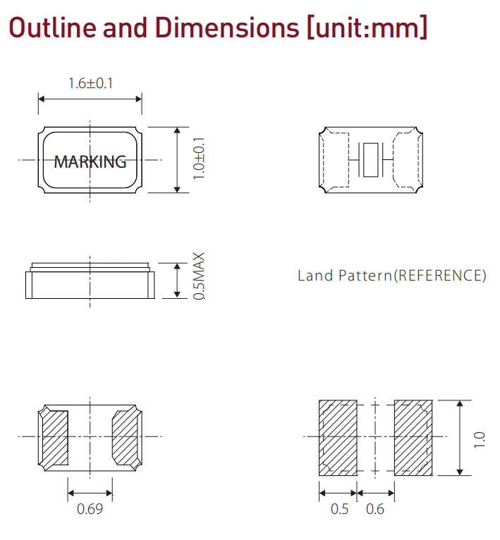 尺寸:1.6x1.0x0.5mm